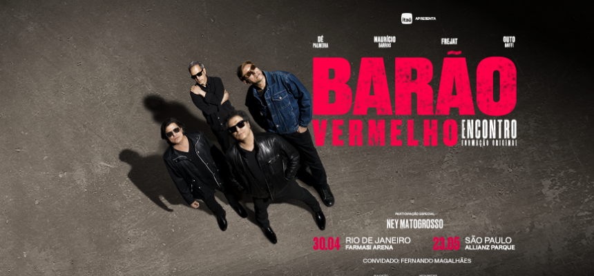 Quando o jornalista e produtor Ezequiel Neves ouviu a primeira fita do Barão Vermelho, ele sentenciou: “É rock puro, escrachado e demencial, imperfeito e carnívoro. Trombetas selvagens anunciando o começo de um novo mundo”. Ao emoldurar o sentimento de rebeldia e liberdade dos anos 1980 com a “voz de Cazuza cuspindo fogo em doses avassaladoras” (como bem disse Ezequiel), o grupo revolucionou o cenário musical da época. As canções, com poesia e irreverência, deram conta de se tornar a trilha sonora de um país complexo como o Brasil. E ultrapassaram gerações pela atemporalidade das letras. Agora, começa a turnê Barão Vermelho Encontro – Pro Mundo Inteiro Acordar que reúne a formação original do grupo: Roberto Frejat (guitarra e voz), Guto Goffi (bateria), Mauricio Barros (teclados) e Dé Palmeira (baixo) – e terá ainda como convidado especial o guitarrista Fernando Magalhães, que ingressou no grupo em 1985. Realizada pela 30e, maior companhia brasileira de entretenimento ao vivo, e apresentada pelo Itaú, a turnê tem as seguintes datas confirmadas: 30 de abril, na Farmasi Arena, no Rio de Janeiro; e 23 de maio, no Allianz Parque, em São Paulo. Nas duas cidades, o Barão Vermelho Encontro recebe a participação de Ney Matogrosso. A pré-venda exclusiva para clientes do Itaú tem 15% de desconto no valor dos ingressos e começa no dia 12 de dezembro, às 15h; a venda geral começa ao meio-dia do dia 15 de dezembro, pelo site da Eventim.