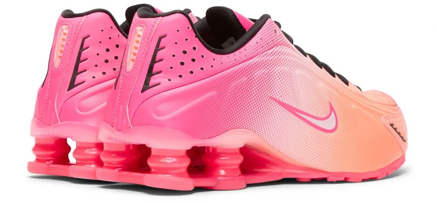 Com um laranja vibrante e um rosa intenso na parte superior, a Nike cria uma mistura gradual dos dois tons para resultar numa paleta de cores que lembra sorvete. Essa combinação perfeita de cores de verão é acentuada por cadarços e interior pretos, enquanto um rosa-avermelhado intenso aparece nas colunas Shox no calcanhar. Sem dúvida, este tênis é mais indicado para climas quentes do que para climas frios, mas com os ajustes certos, ele se torna uma escolha fácil para o ano todo.
